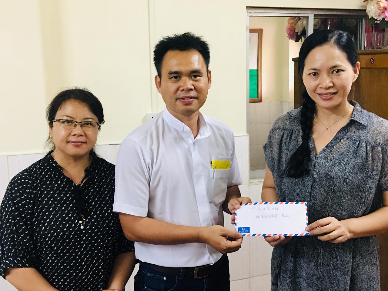2019/3/24 請廖牧師代為轉交善商愛心救助金50,000元給在瓦城醫院的張明周牧師。